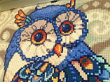 Очень милая картина, приятные цвета. У меня пара-Филин и Совушка, вместе смотрятся прекрасно. Проблем со стразами не было: у меня много пакетиков с замком, я перекладываю и работаю.