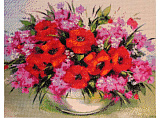 Алмазная вышивка «Букет маков на столе» с первого взгляда чарует своим буйством красок. Насыщенно-красные цветки мака гармонично разбавляют нежно-фиолетовые и белые мелкие цветочки. Такая картина станет достойным украшением любого дома.