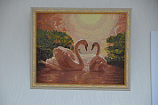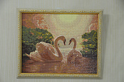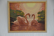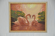 Лебеди являются символом верности. Алмазная вышивка с этими величественными и грациозными птицами будет напоминать о любви и понимании, теплоте и семье. Все это великолепие дополняет небо, которое сквозь поволоку облаков едва освещают солнечные лучи. Такой картиной можно любоваться часами.