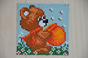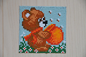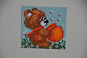 Работу собрал пятилетний ребенок. Яркие краски.Ребенку очень понравилось.Стразы хорошо прикрепляются, не отваливаются на вертикальной поверхности. При этом легко можно поправить пинцетом ошибку.