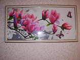 Алмазная вышивка «Ветка магнолии» сочетает в себе красоту цветовой гаммы и оригинальность композиции. На светлом размытом фоне насыщенно-фиолетовые цветки смотрятся еще более выразительно и эффектно. А едва заметные бабочки тех же тонов делают работу легкой и непринужденной.