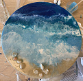 - На основу картины добавляем перемешанный морской песок со смолой и распределяем его по поверхности, то есть имитируем пляж.