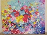 Перед вами букет роз, выполненный в очень интересном стиле. Он напоминает настоящий взрыв красок. Видно, что художница Лиана Моисеева вложила в свое творение всю душу. Почти 40 красок вам потребуется, чтобы повторить это цветовое безумство. Во время работы вы просто забудете о времени!