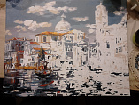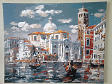 Венеция – удивительный город на воде, и прекрасный сюжет для картины. На заднем плане картины ее главный объект – церковь Сан Джеремия, а на переднем – гондольеры плавают на своих маленьких лодочках. Часть картины – это отражение в воде, поэтому рисовать ее довольно сложно, но очень интересно.