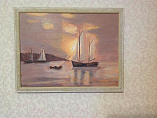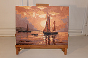 В лучах заходящего золотого солнца бороздят водную гладь маленькие кораблики. На воде нет волн, вокруг царит умиротворение. Так и хочется попробовать рукой воду, кажется, что она такая теплая и ласковая. Нарисуйте эту картину в бежевых тонах и используйте в дизайне вашего интерьера.
