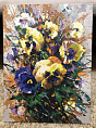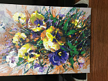 Елена Калашникова изобразила крайне трогательные анютины глазки. Эти цветы такие нежные, романтичные, воздушные. Букет на картине получился сдержанный, яркий, но в меру. Готовая картина будет украшать интерьер, но не станет перетягивать на себя все внимание. Рисовать ее будет интересно даже художникам с опытом.