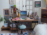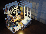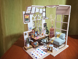 С помощью ножниц и клея вы сможете собрать удивительно детализированный интерьер одной комнаты. Каждый элемент собирается из деревянных и бумажных составляющих. Изюминкой румбоксов является проводка электричества для миниатюрных светильников, работающих от батарейки.