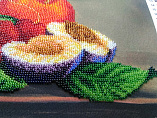 Набор для частичной вышивки бисером отличного качества, в комплекте: 21 цвет бисера, канва и с четкой цветной символьной схемой, иголка. Отдельно понадобится леска или нить (я шила на леске). Вышитые фрукты получаются очень объемными, реалистичными, так и хочется "откусить кусочек". В готовом виде смотрится необыкновенно эффектно.