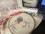 Вышивается крестом, окантовочным стежком, французским узелком.